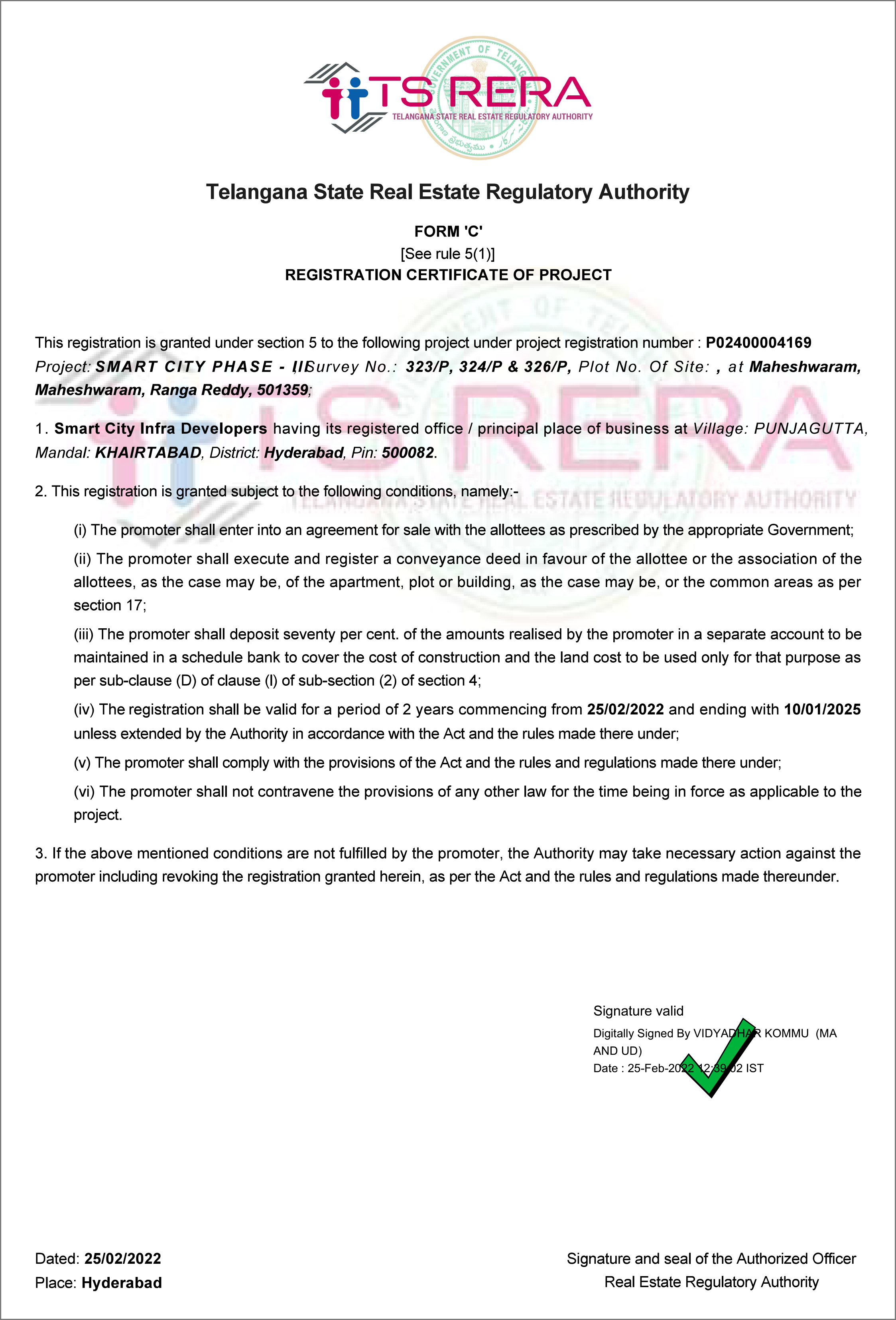 Everyone wishes to live in a spacious home of his own. A tranquil landscape to enjoy fresh breezes, and gently swaying trees. Experience the birdsong and the bees hovering over fragrant flowers. Welcome to Smart City, an HMDA Approved layout of fully developed plots with all amenities. It is centrally located in Maheswaram, close to Electronic City, mega housing projects and upcoming giant parks like Hardware Park, E City, Aerospace Park and Pharma City. Maheshwaram is rapidly developing into a hub for fast track growth in various sectors.